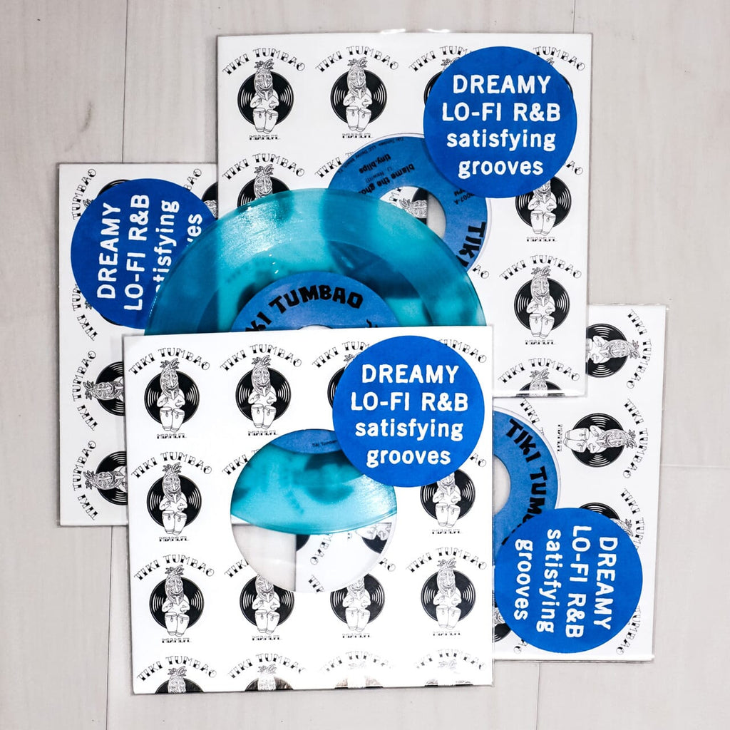 tiny.blips latest 7' vinyl release on - Tiki Tumbao - a South Florida based record label, vinyl vendor and event production company started in 2020 by Travis Acker @ackdaddy.